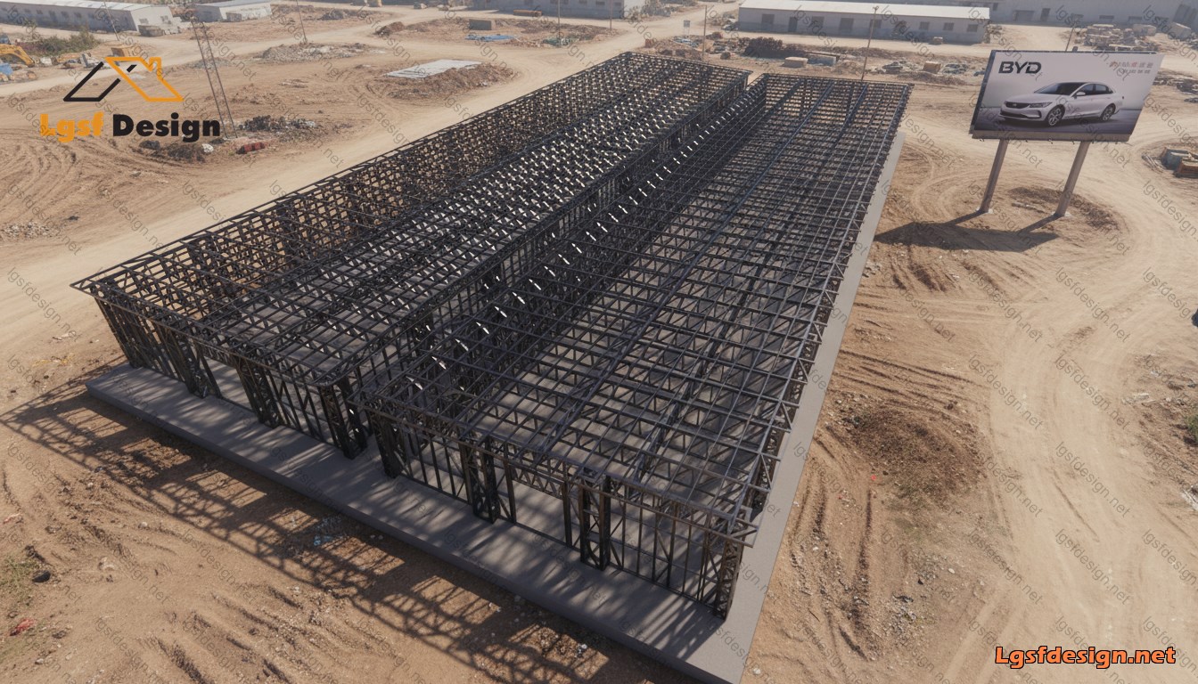 This storage building was designed and built using the LSF system — combining strength, precision, and modern engineering. With dimensions of 38 ft × 158 ft × 10 ft, it offers a spacious open-plan interior with no internal walls, perfect for flexible storage solutions. Designed to withstand wind speeds up to 40 m/s, this structure ensures durability and long-term reliability with a clean, efficient design.
