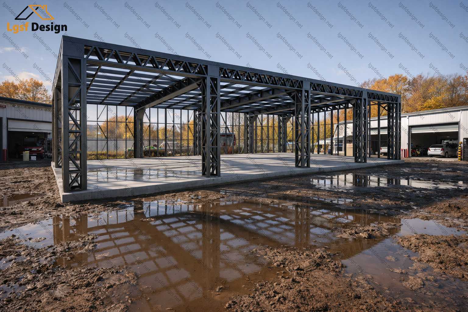 Modern steel-frame car wash structure designed for efficiency and durability. With dimensions of 19 × 9 m, this open-span layout allows smooth vehicle flow and easy equipment installation. Built on a solid concrete slab, it offers long-term performance with minimal maintenance—an ideal solution for modern automotive service environments.