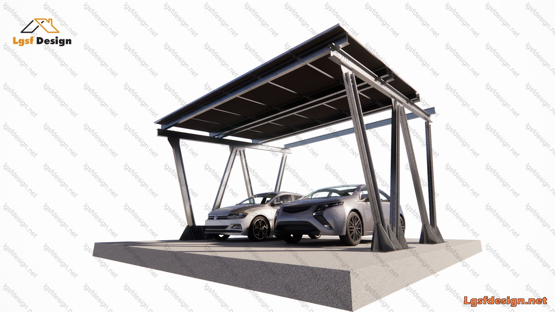 This elegant and durable carport is designed using the LSF (Light Steel Frame) system, combining modern engineering precision with a clean, contemporary look. The structure features a 6-meter clear span, providing ample space for two vehicles while maintaining an open and airy aesthetic.