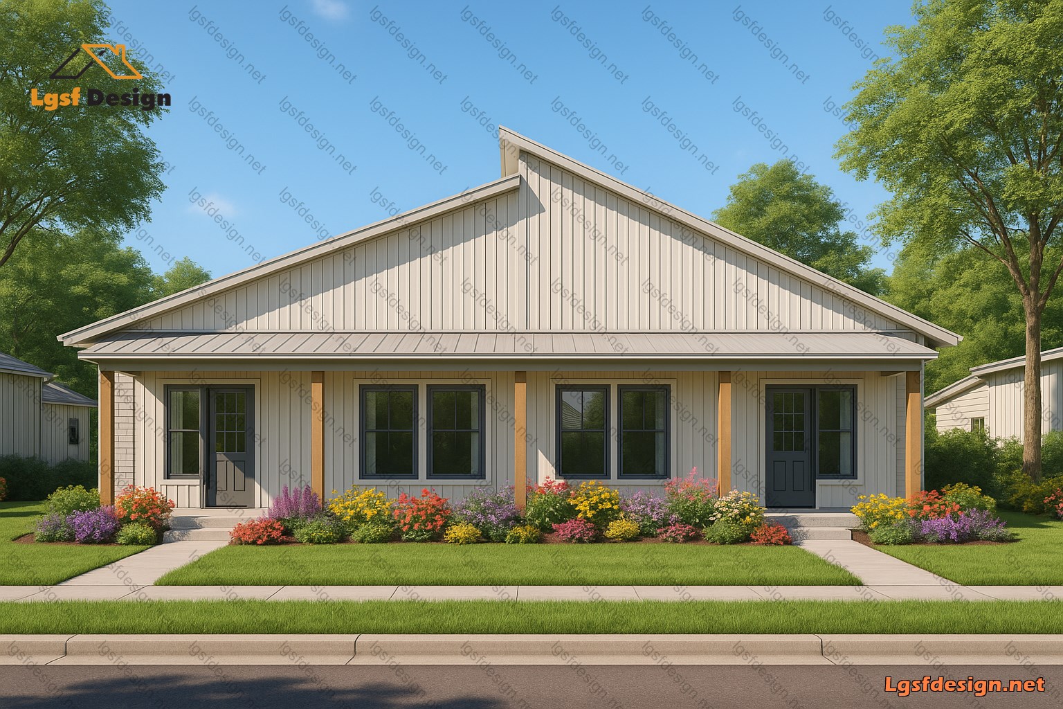 This elegant duplex house plan offers a perfect blend of comfort, functionality, and modern design. With two symmetrical units, it’s ideal for extended families, rental opportunities, or multi-generational living.
