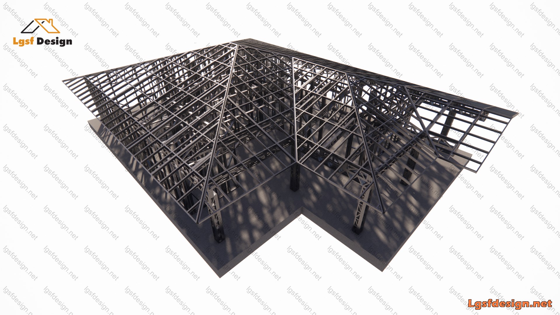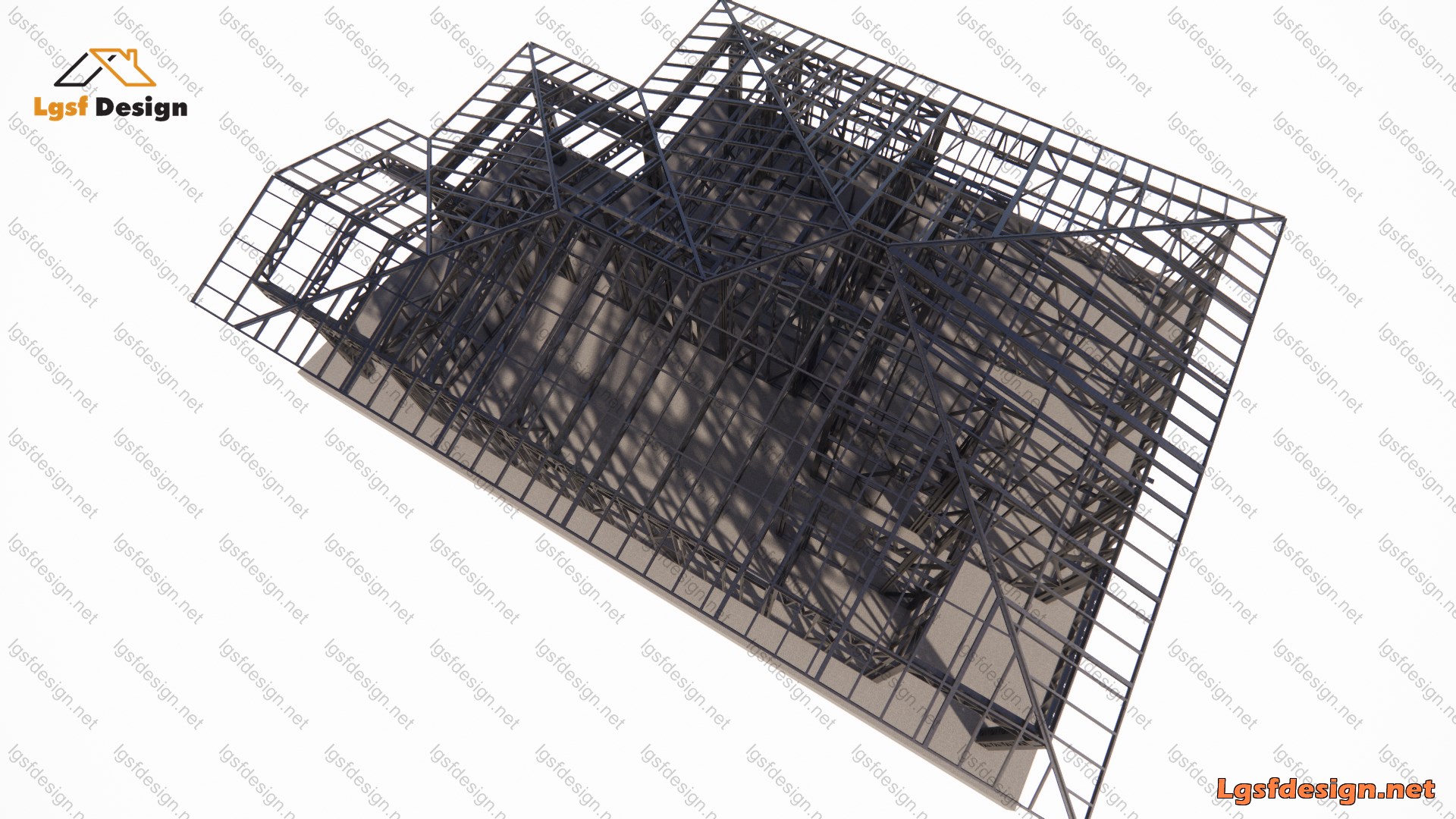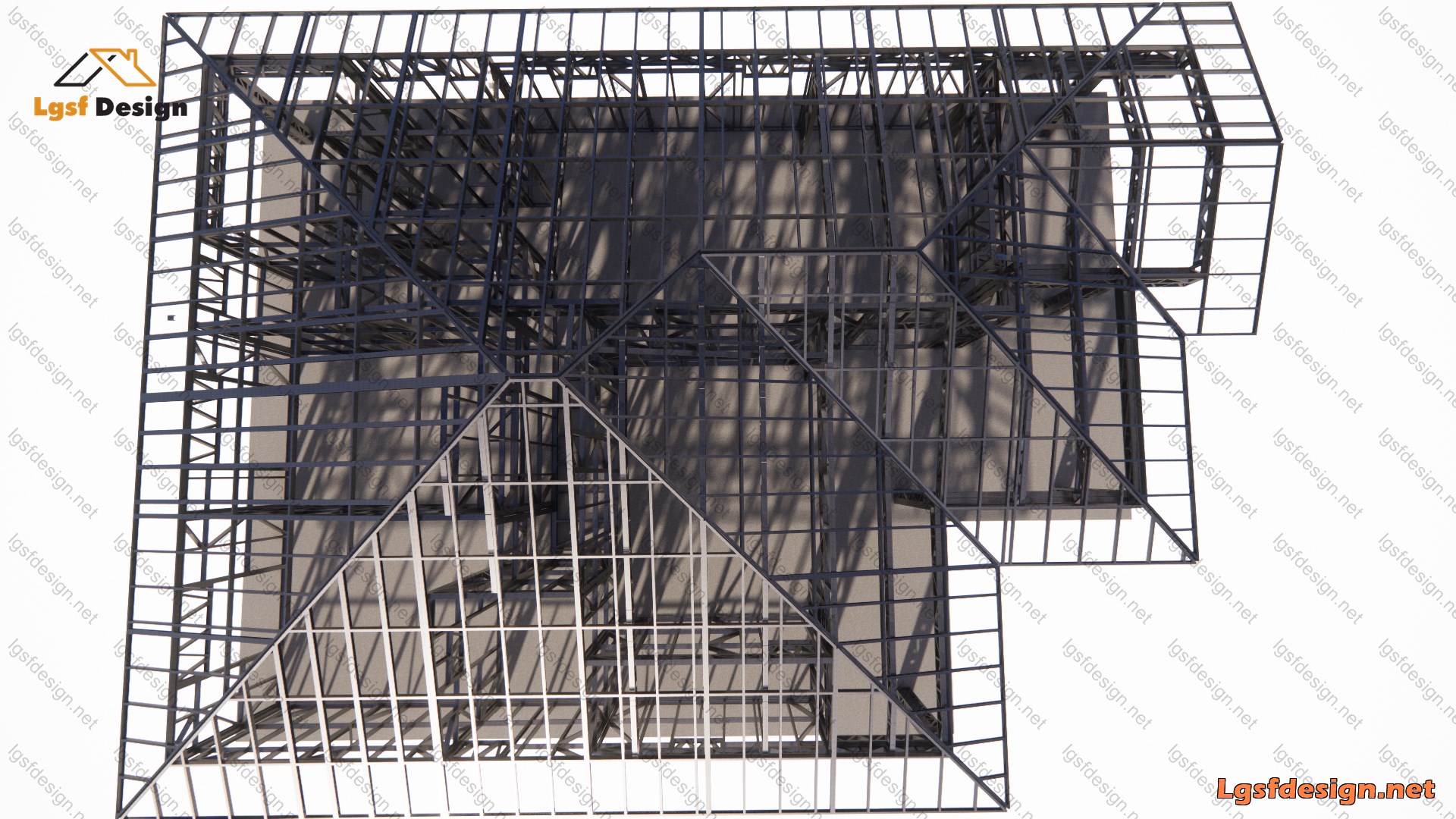 This modern single-story house is designed with a smart and practical layout, combining functionality with aesthetic appeal. The steel structure is engineered using LSF (Light Steel Frame) technology, ensuring a lightweight yet highly durable and earthquake-resistant framework. The hip-style roof with intersecting ridges gives the building a solid architectural character, while the open-plan living areas provide a spacious and comfortable environment.