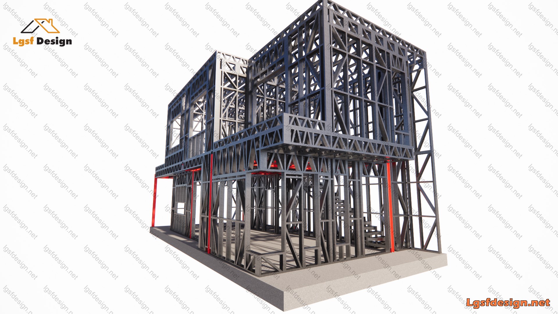 the structural framework of a modern two-story house built using the LSF (Light Steel Frame) system in Cyprus. The total floor area of the house is 220 m², designed with a strong emphasis on precision, durability, and efficiency. The structure consists of cold-formed galvanized steel profiles, offering excellent resistance to corrosion, moisture, and seismic loads. The light steel framing system allows for fast and clean construction, with minimal environmental impact compared to traditional building methods.