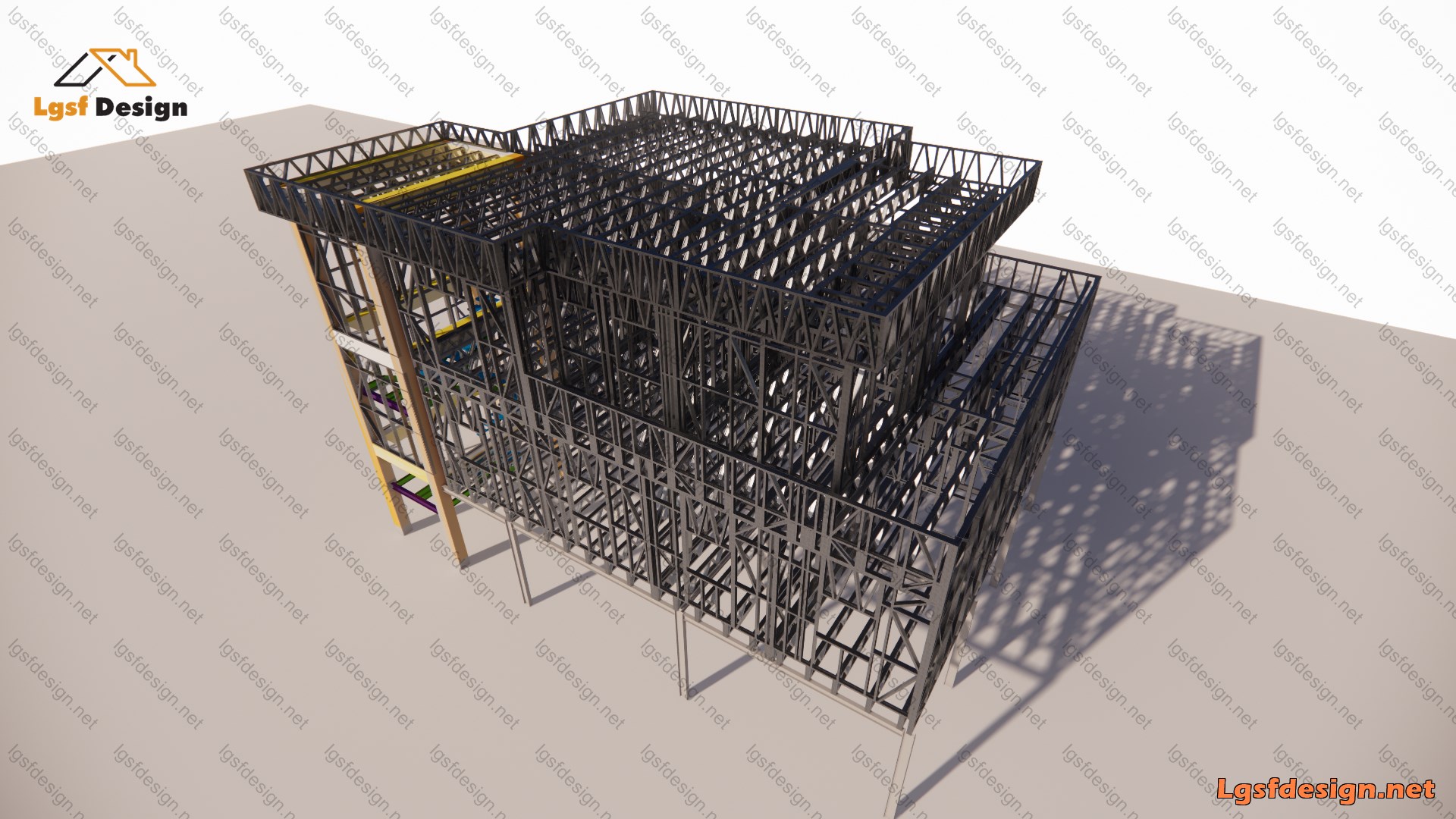 This project is a 360 m² building designed to be constructed in Cameroon. The development consists of three levels. The ground floor will be built using hot-rolled steel members to provide a strong and stable base. The second and third floors will be constructed with a Light Steel Frame (LSF) system. The second floor is planned as an office area, while the third floor will serve as a laboratory. The combination of hot-rolled steel and LSF offers a lightweight, durable, and efficient structural solution, allowing fast installation and excellent performance in various climate conditions. This building showcases modern steel construction technology and a high-quality engineering approach from concept to execution.