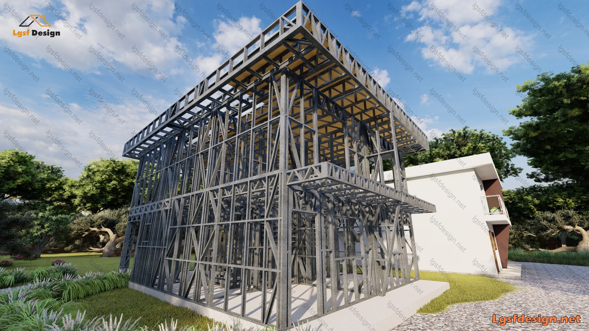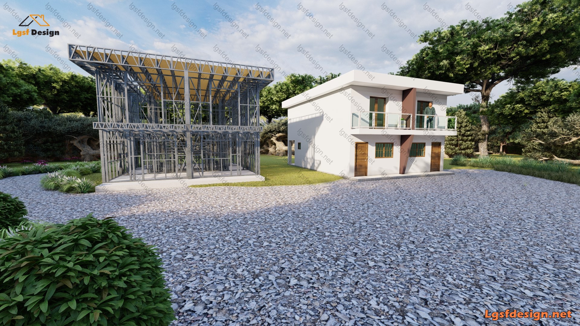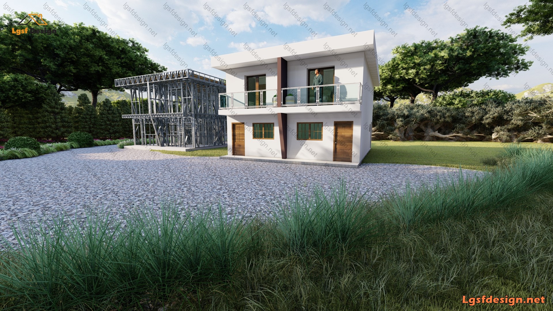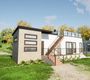 This clever design showcases two adjoining 75-square-meter homes, totaling 150 square meters. Each unit features a ground floor with an open living space, equipped kitchen, and bathroom. The first floor of each unit contains two large bedrooms with built-in closets and a full bathroom. Central spiral staircases connect the floors. Large windows provide abundant natural light. This efficient design offers an ideal combination of private and public spaces in a compact, flexible format, perfect for modern living arrangements.