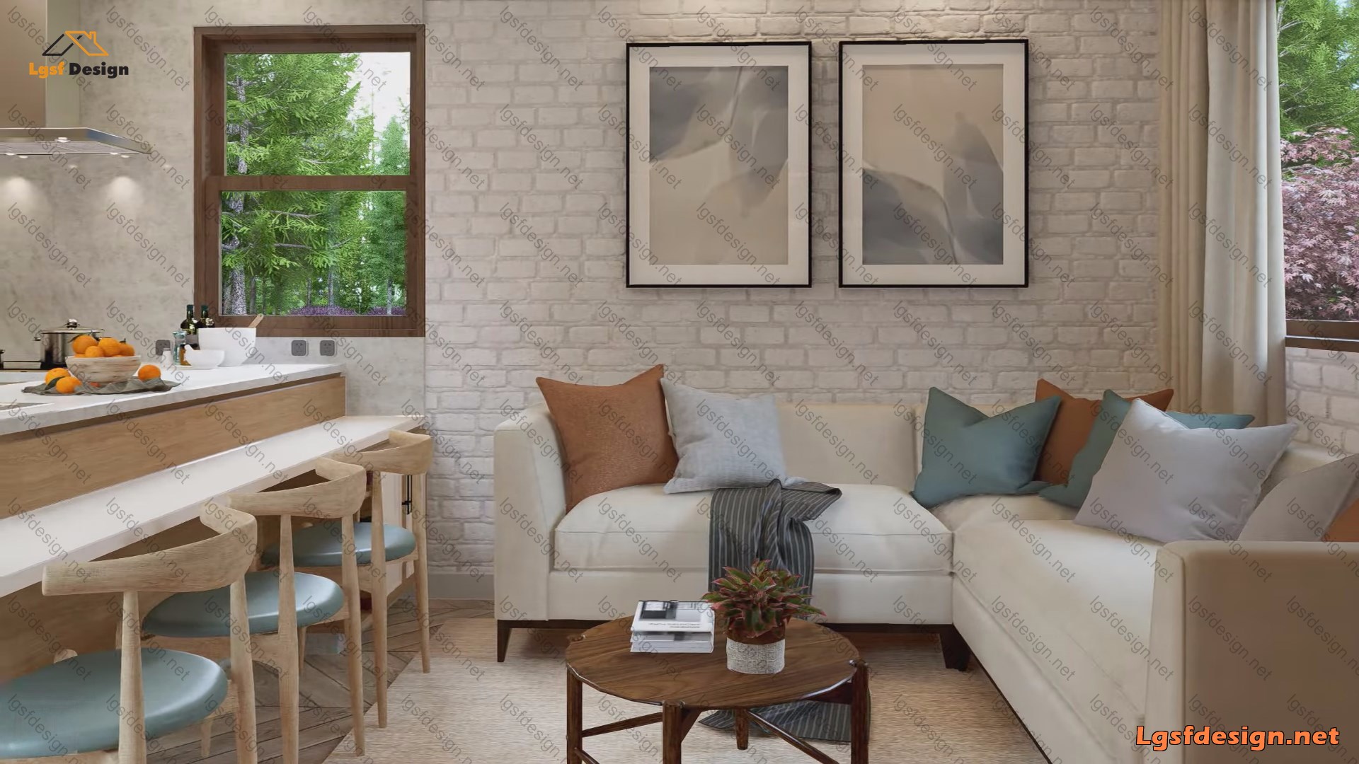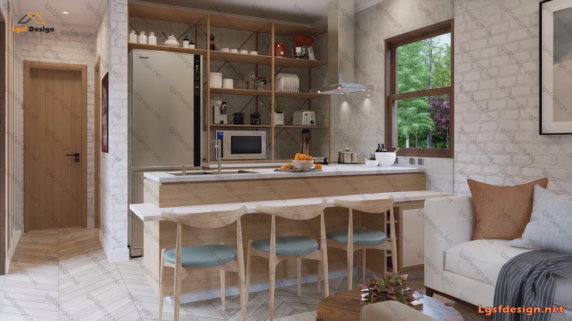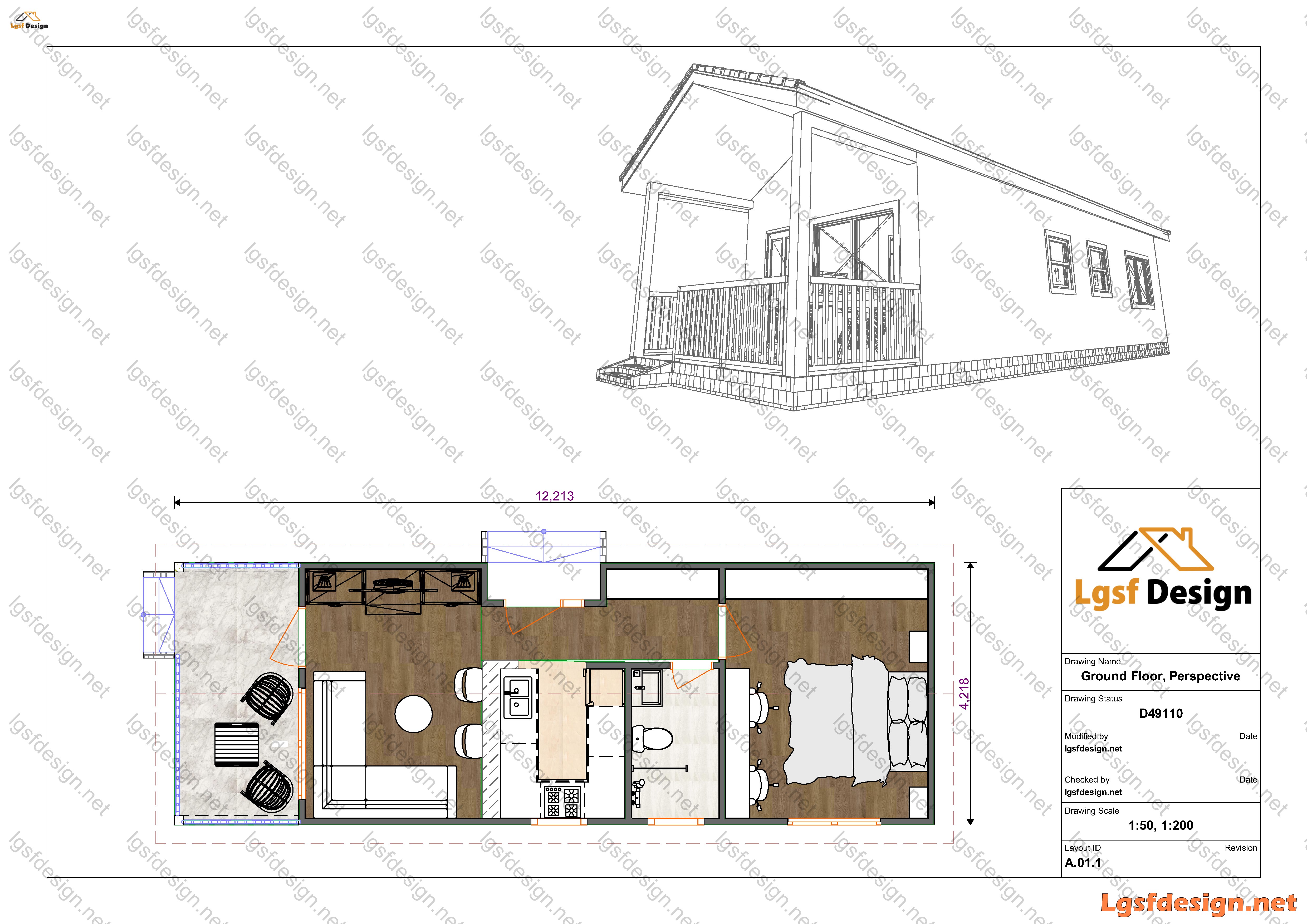 This compact and modern house design by LGSF Design offers a functional and aesthetically pleasing layout ideal for small families, couples, or even individuals seeking a cozy yet stylish living space. With a total length of 12.2 m (40ft) and a width of 4.2 m ( 13ft-10 in), this home features an open-plan living area that seamlessly blends into the dining and kitchen space, maximizing the sense of space and comfort.