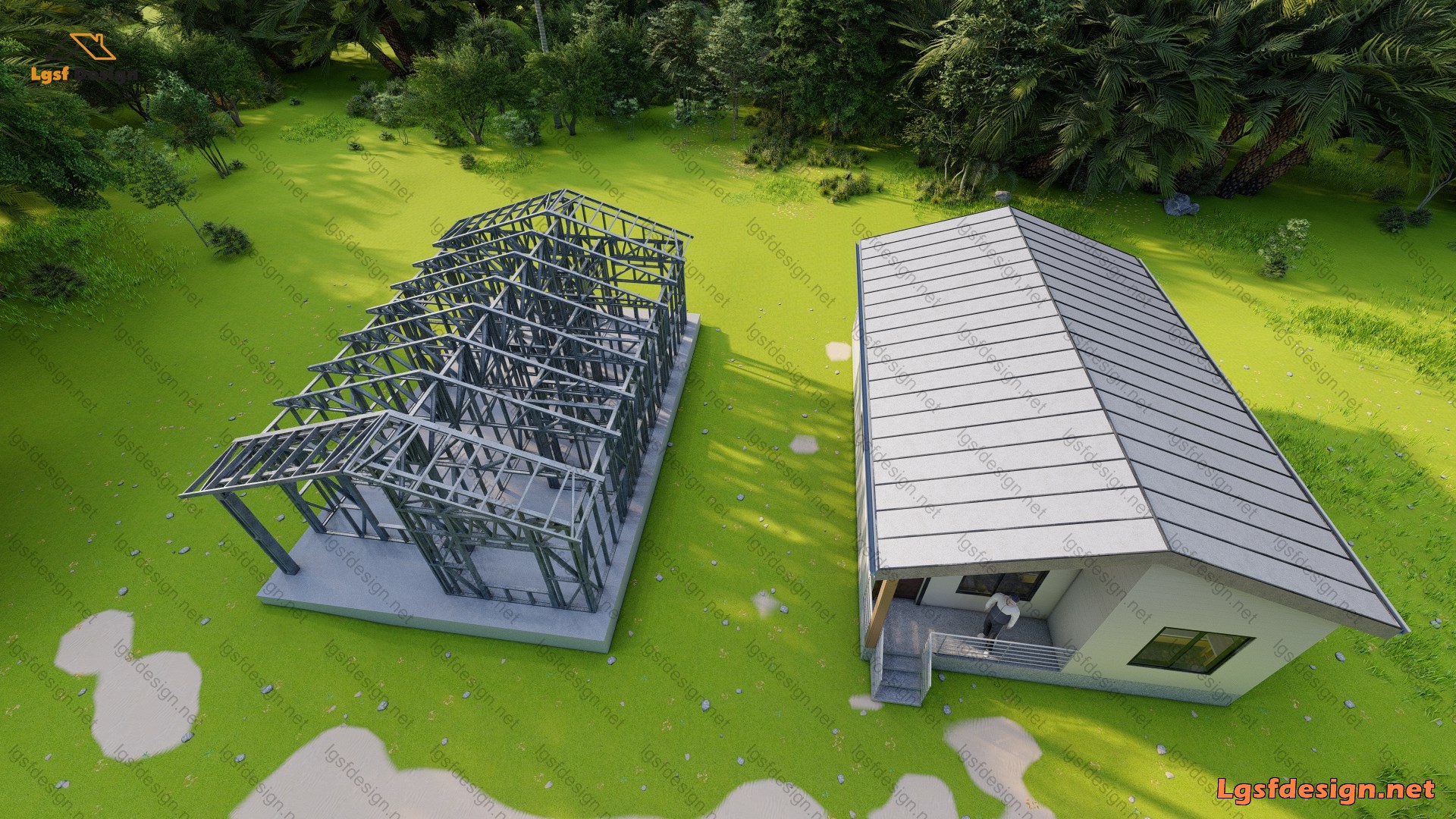 This house design, utilizing the LSF (Light Steel Frame) method, offers a lightweight structure that reduces construction costs and speeds up the building process. The reduced weight minimizes the need for extensive foundational work, allowing for significant savings. With this modern and efficient construction technique, you can enjoy a durable and energy-efficient home at a fraction of the cost of traditional builds.
