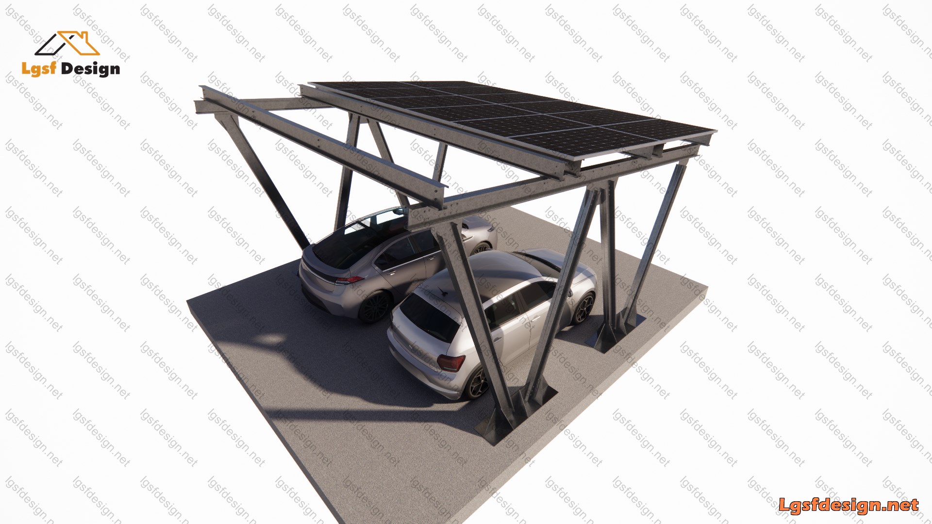 The roof structure is specifically prepared to support solar panels, offering an ideal solution for those who value sustainability and energy efficiency. With its galvanized steel framing and minimalist architectural lines, this LSF carport not only provides protection and functionality but also enhances the visual appeal of any modern home or property.