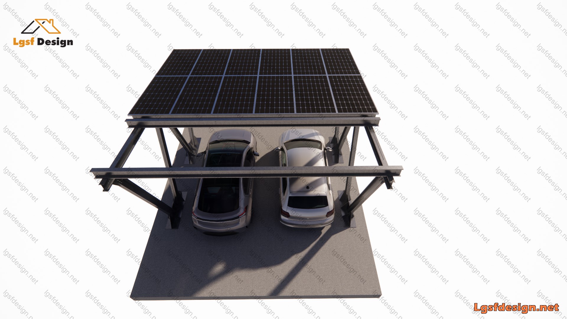 This elegant and durable carport is designed using the LSF (Light Steel Frame) system, combining modern engineering precision with a clean, contemporary look. The structure features a 6-meter clear span, providing ample space for two vehicles while maintaining an open and airy aesthetic.