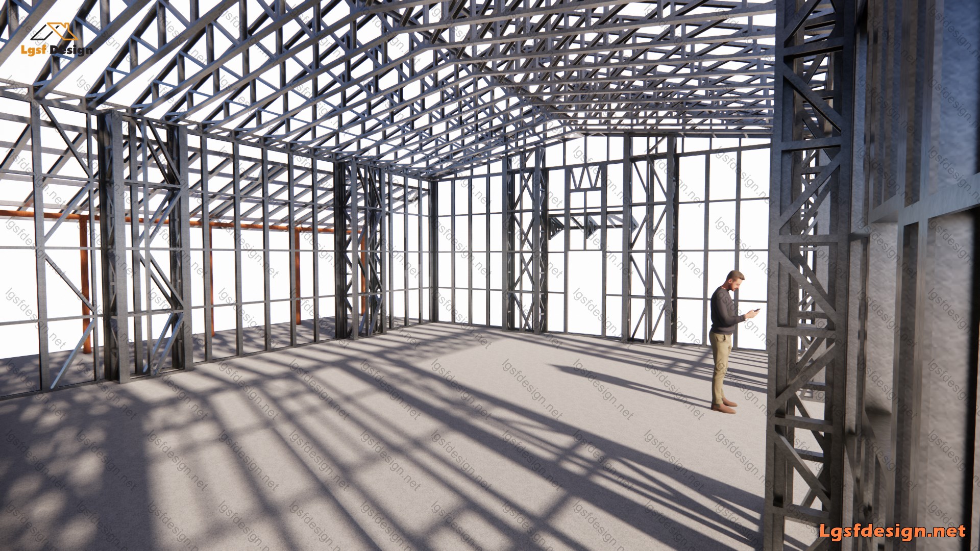 The warehouse structure, designed with LSF (Light Steel Frame) technology, measures 50 feet in length, 32 feet in width, and 14 feet in height. LSF systems are ideal for such projects due to their ease of construction, cost efficiency, and fast assembly process. Structures of this size can be built quickly and affordably with the LSF system, making it an excellent choice for various storage or industrial purposes.