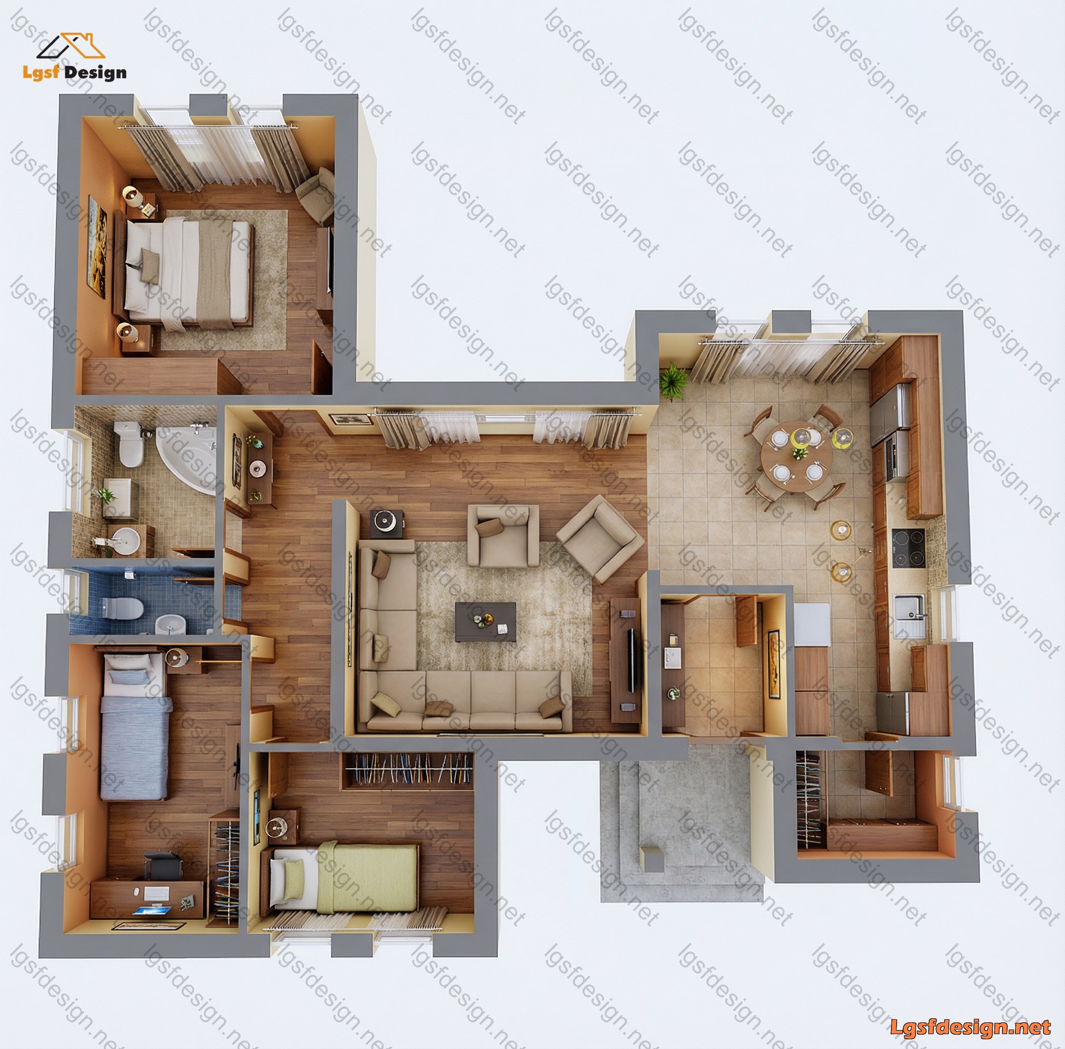 This 116 m² residential house is designed with a Light Steel Frame (LSF) structural system, combining modern construction technology with a warm and functional architectural layout. The plan has been carefully organized to create a clear separation between private and public zones, ensuring both comfort and efficiency in daily living.