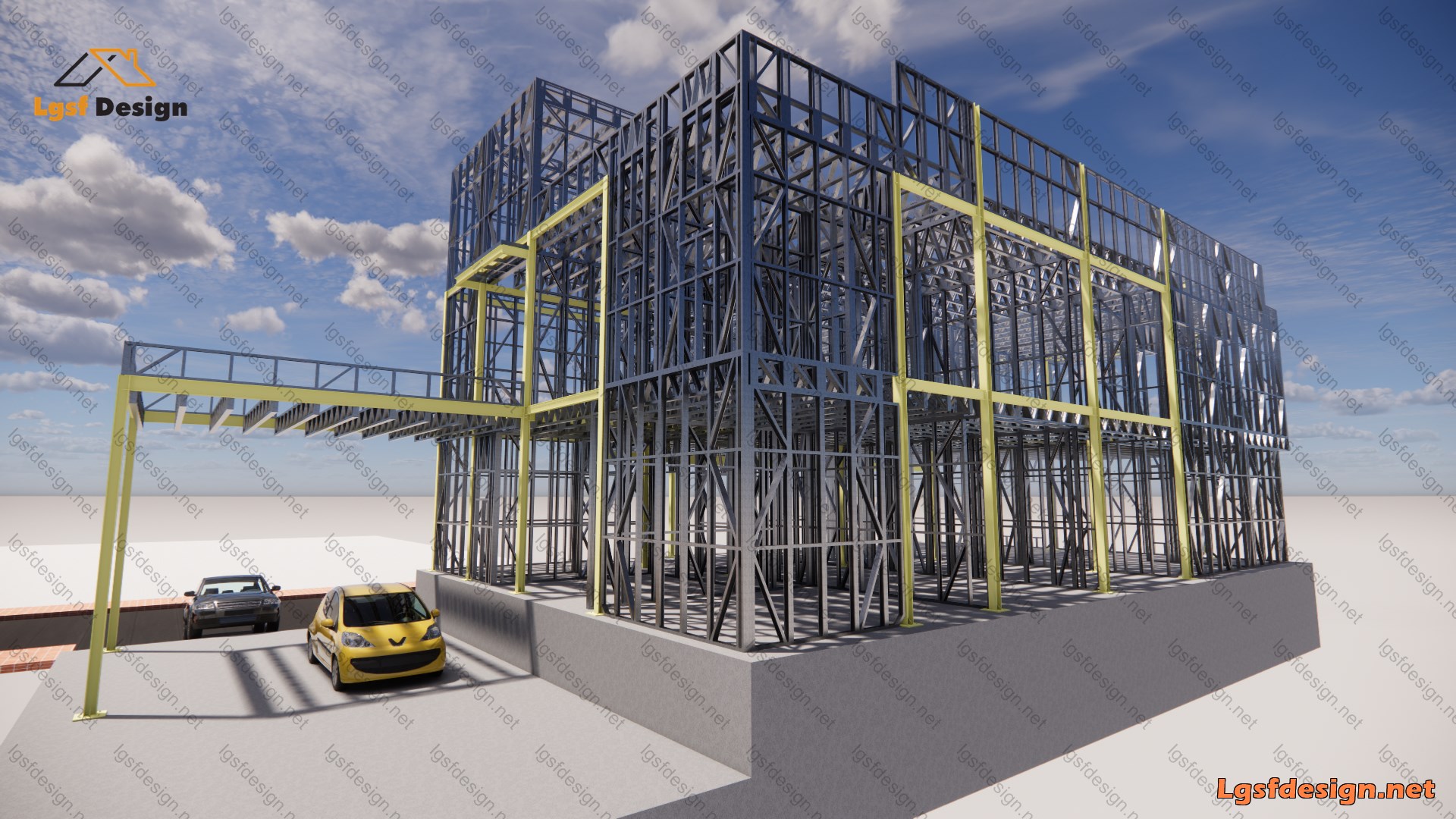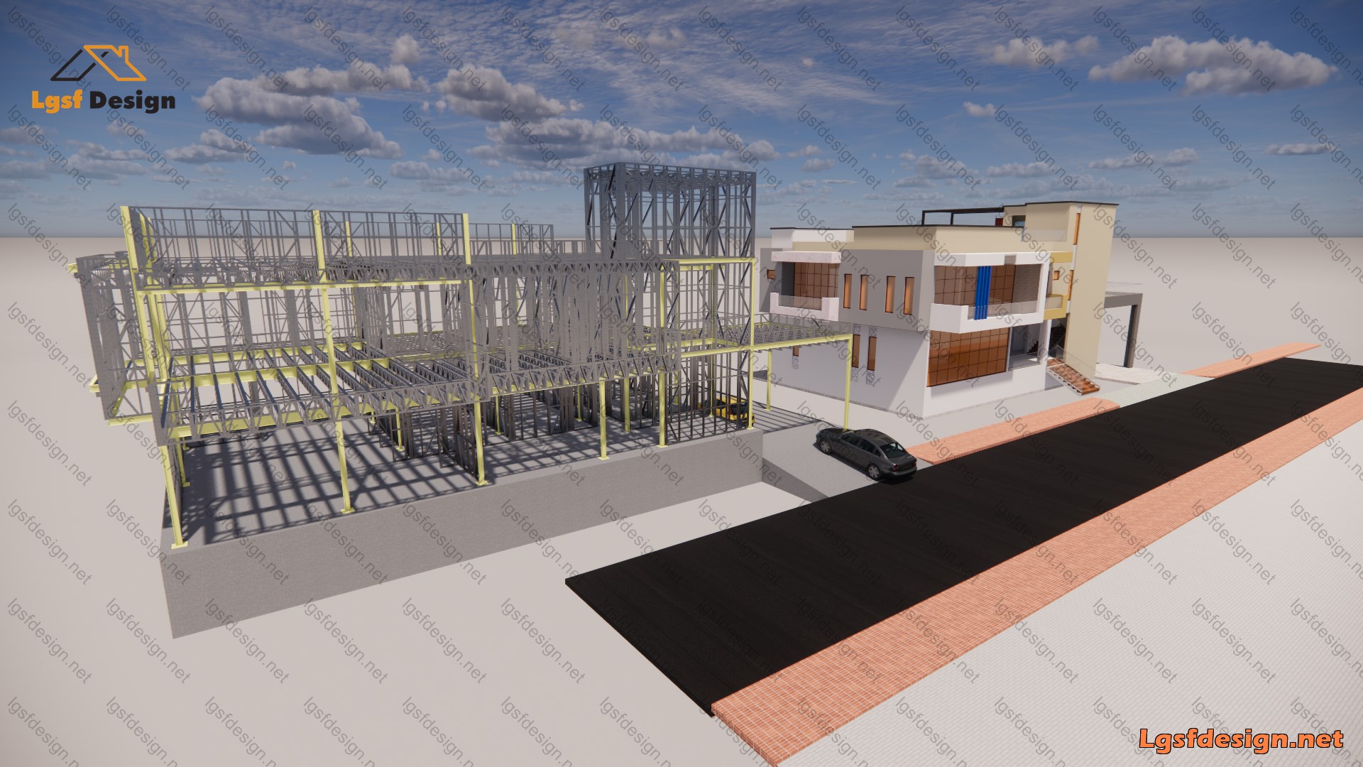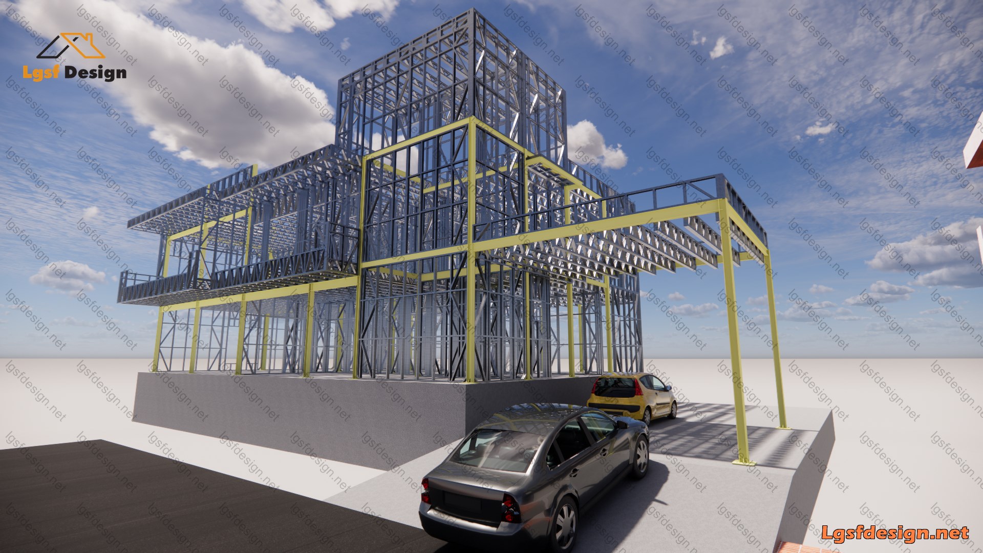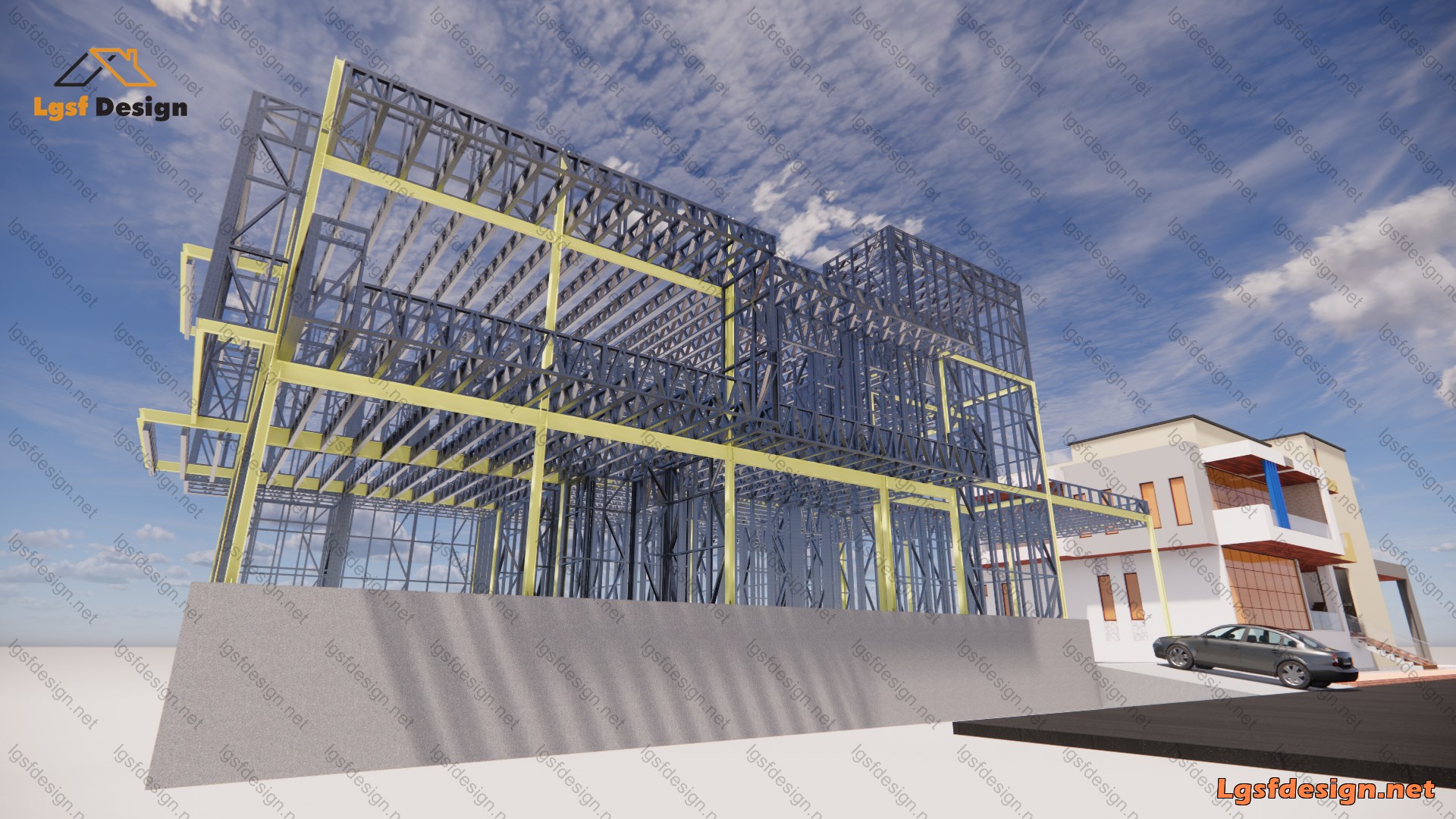 By utilizing hot-rolled steel for the main framework and LSF for lightweight, efficient construction, this design ensures high structural integrity, rapid assembly, and cost-effectiveness.