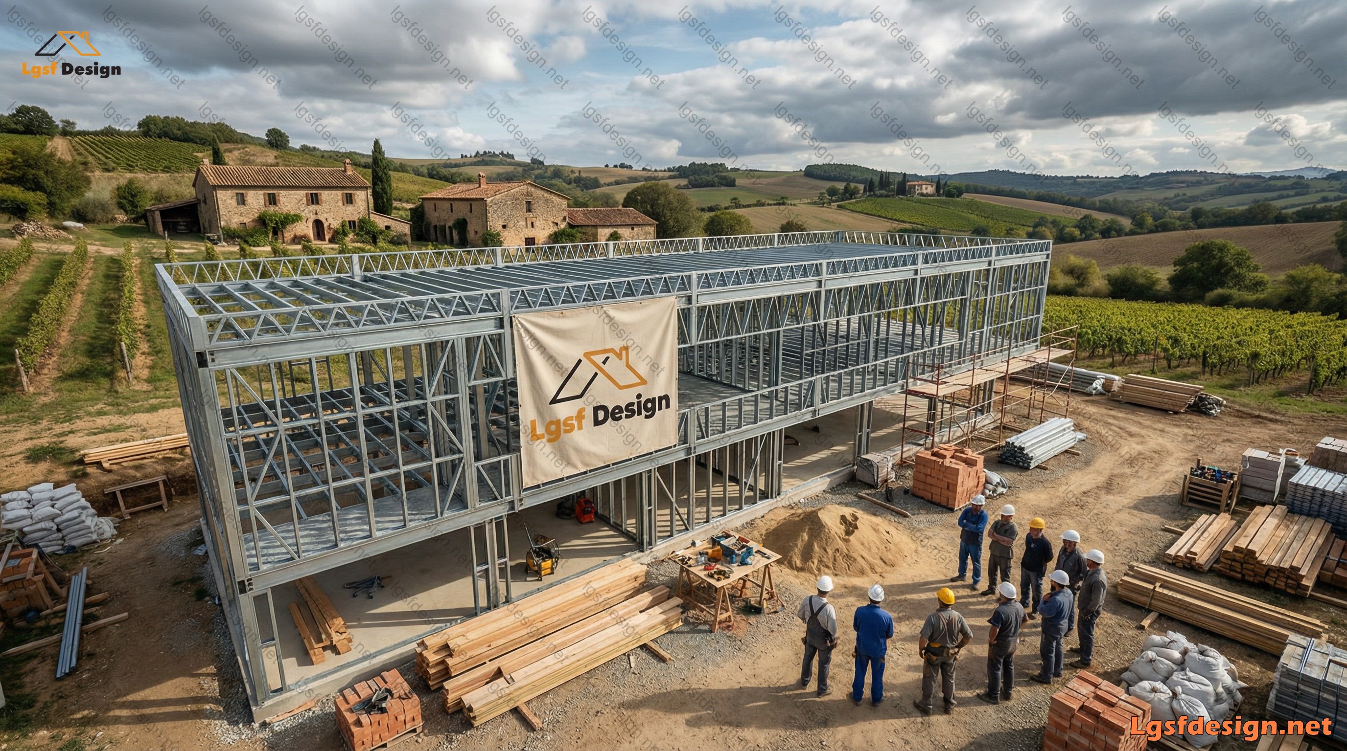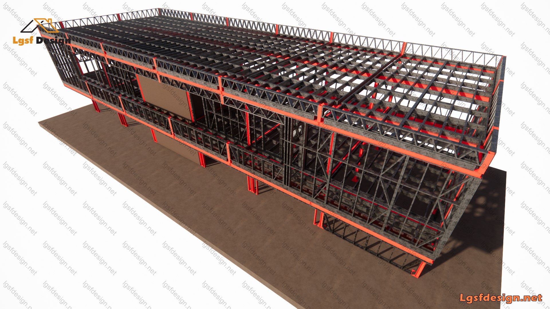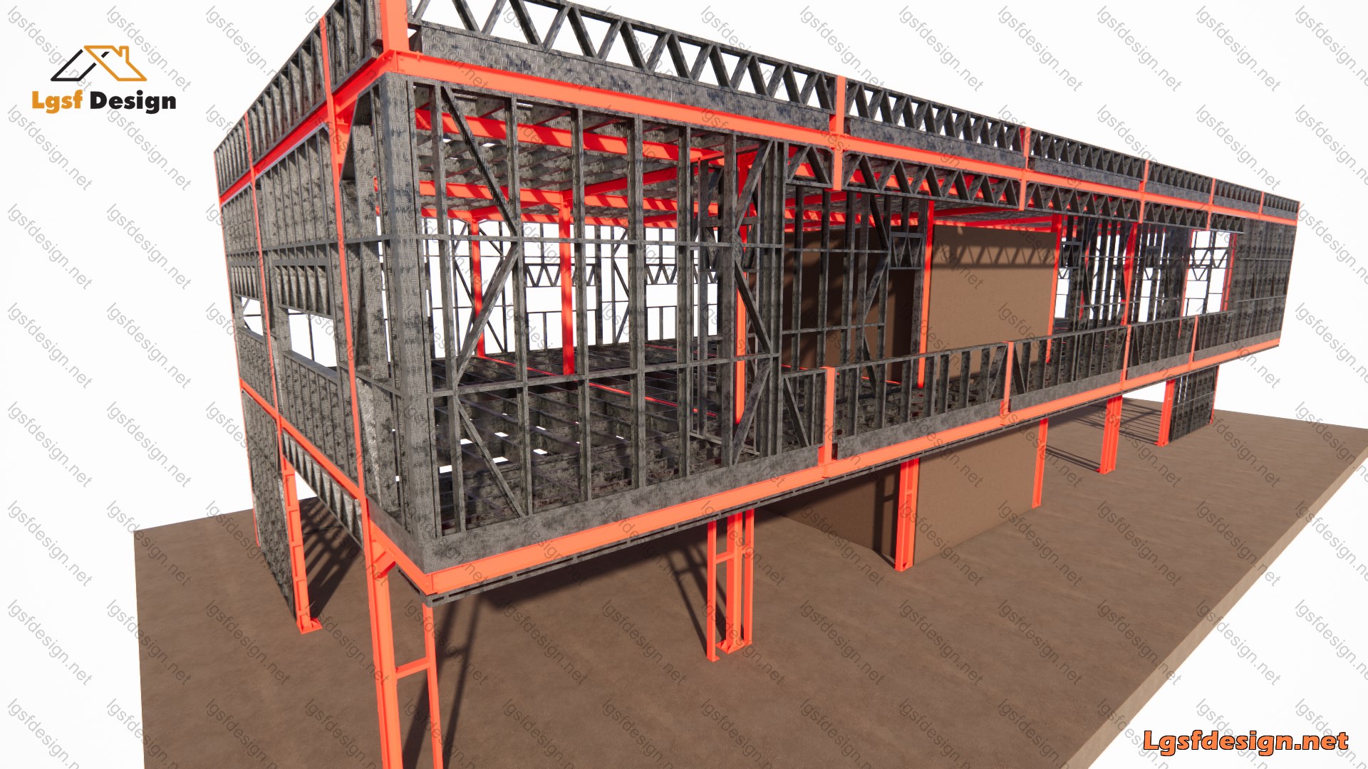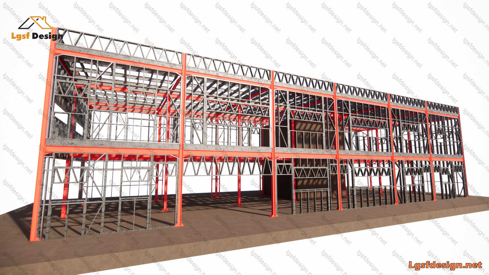 The structural system is based on a hybrid solution, combining Light Steel Frame (LSF) construction with hot-rolled steel elements. LSF is used for its precision, speed of installation, and efficient load distribution, while hot-rolled steel is incorporated in key structural zones to accommodate larger spans, higher loads, and open commercial layouts typical of retail and passage buildings. This combination ensures structural reliability, architectural flexibility, and optimized material usage.